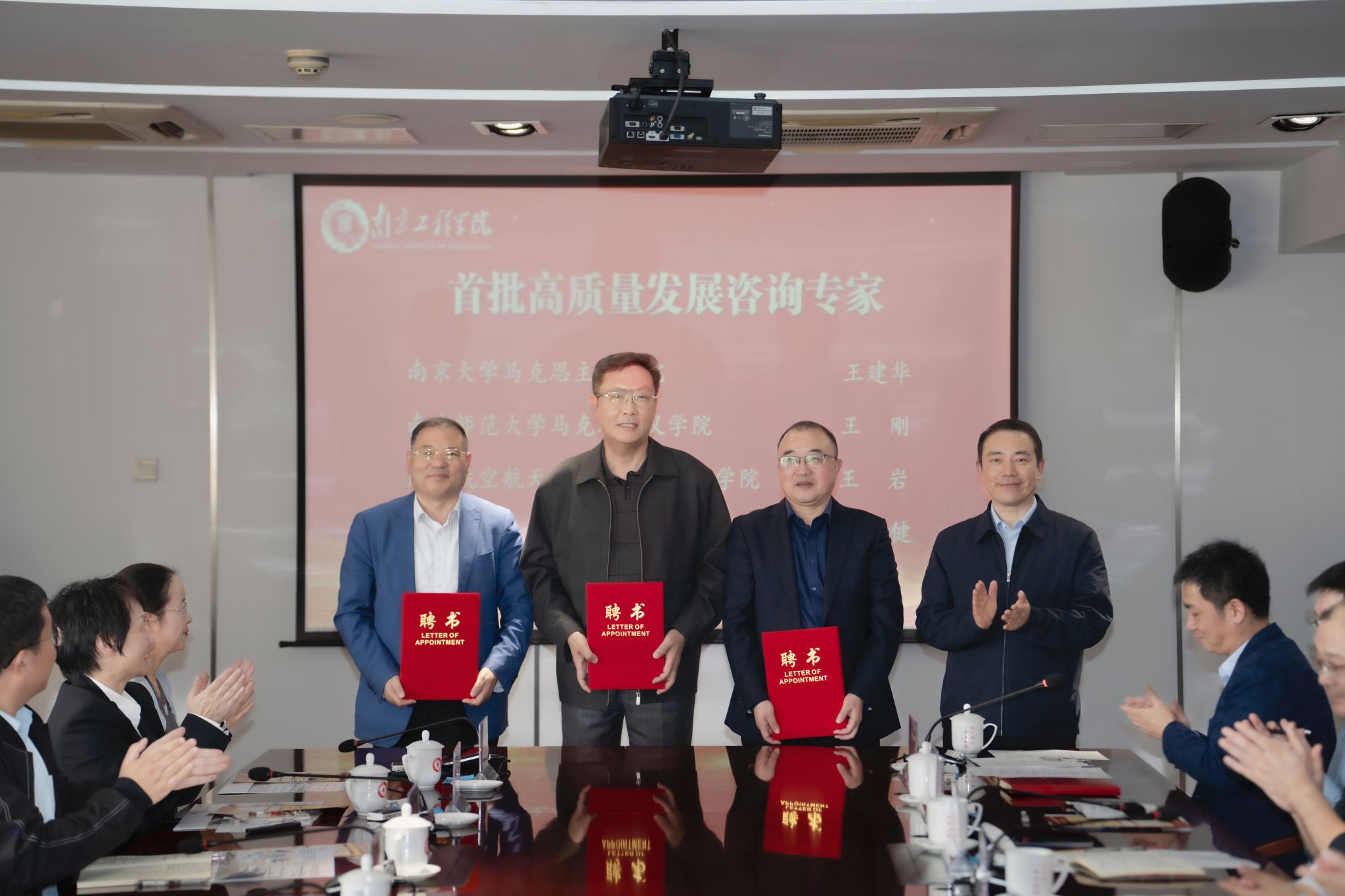 为深入贯彻落实习近平总书记关于思政课建设的重要论述,推进马克思主义学院高质量发展,11月14日下午,马克思主义学院高质量发展咨询专家聘任暨校地共建签约仪式在至勤楼·行政中心北303会议室举行。党委书记孙爱武,党委常委、副校长汪群;省教育厅社政处副处长冯帅;江宁区委常委、宣传部部长张玉力、副部长李强,江宁区委社会工作部副部长张业海、江宁区民政局局长吴仁成、江宁科学园副总经理孔永祥、江宁高新区党群工作部部...