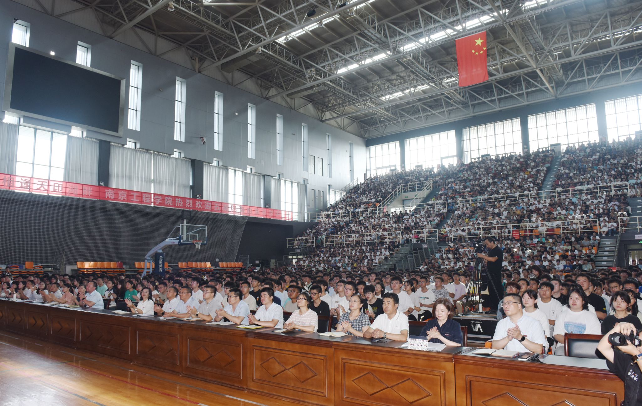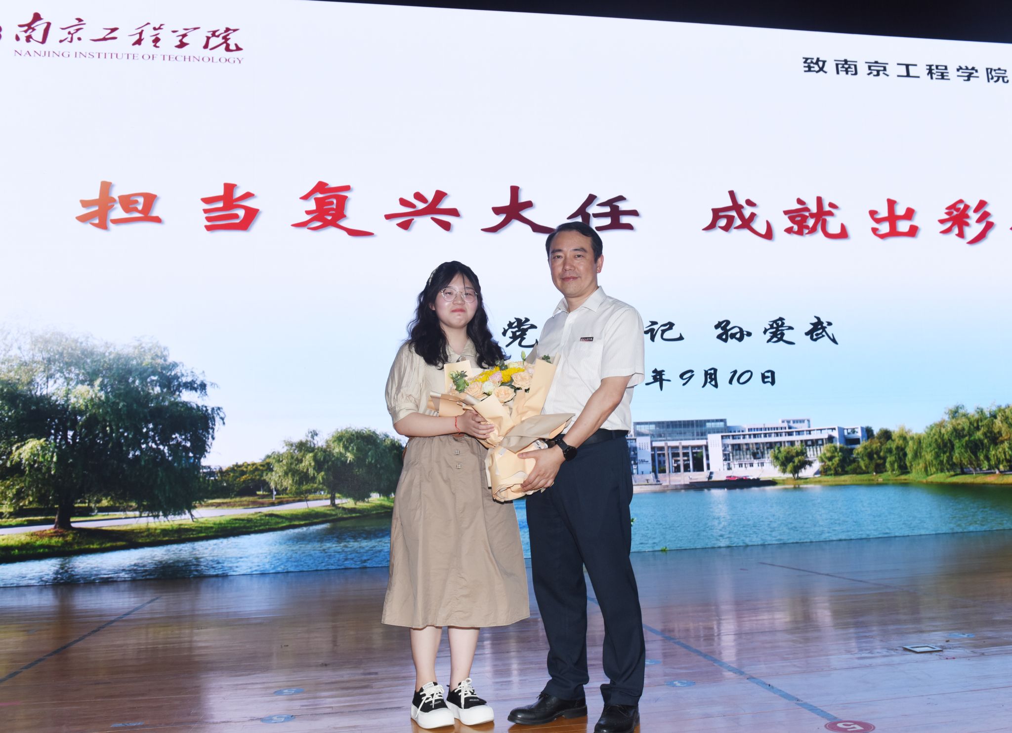 机械凯发、能源与动力凯发等八个学院(中心)的3000余名新生聆听了报告,同学们认真聆听、细心领会、深入思考,现场不时响起热烈的掌声。讲座当天正值第39个教师节,新生代表还为孙爱武赠送鲜花感念师恩。