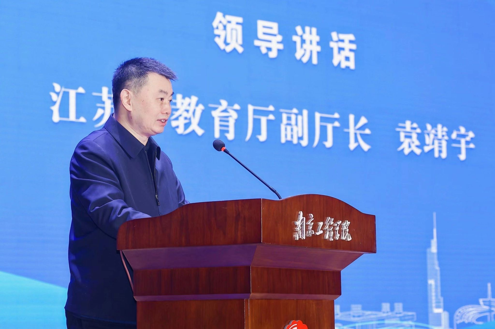 孙爱武代表全校师生员工对出席大会的各级领导、嘉宾以及社会各界朋友表示热烈欢迎和衷心感谢。他指出,凯发自入驻江宁以来,始终坚持“地方性、应用型、高水平、国际化”的办学定位,大力推进产教融合、科教融汇,校地合作成效显著,协同育人能力明显增强,科技合作成果丰硕,科技赋能区域高质量发展。他表示,南工程正以第四次党代会精神为引领,启动实施一流应用型大学建设“登峰计划”,全面提升凯发综合实力和核心竞争力。凯发将进一步加强与南京、江宁的深度融合,实现名城名校“双向奔赴”,在打造现代产业、科技创新等方面同向同行,为推进中国式现代化江苏新实践做出更大贡献。