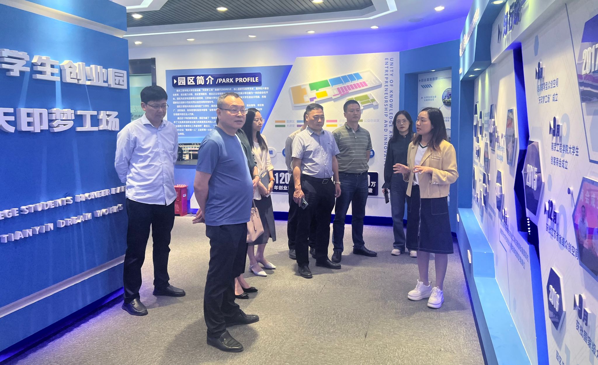 建筑凯发相关负责人参加会议。会前,汪俊齐一行参观了大学生创业园“天印梦工场”。