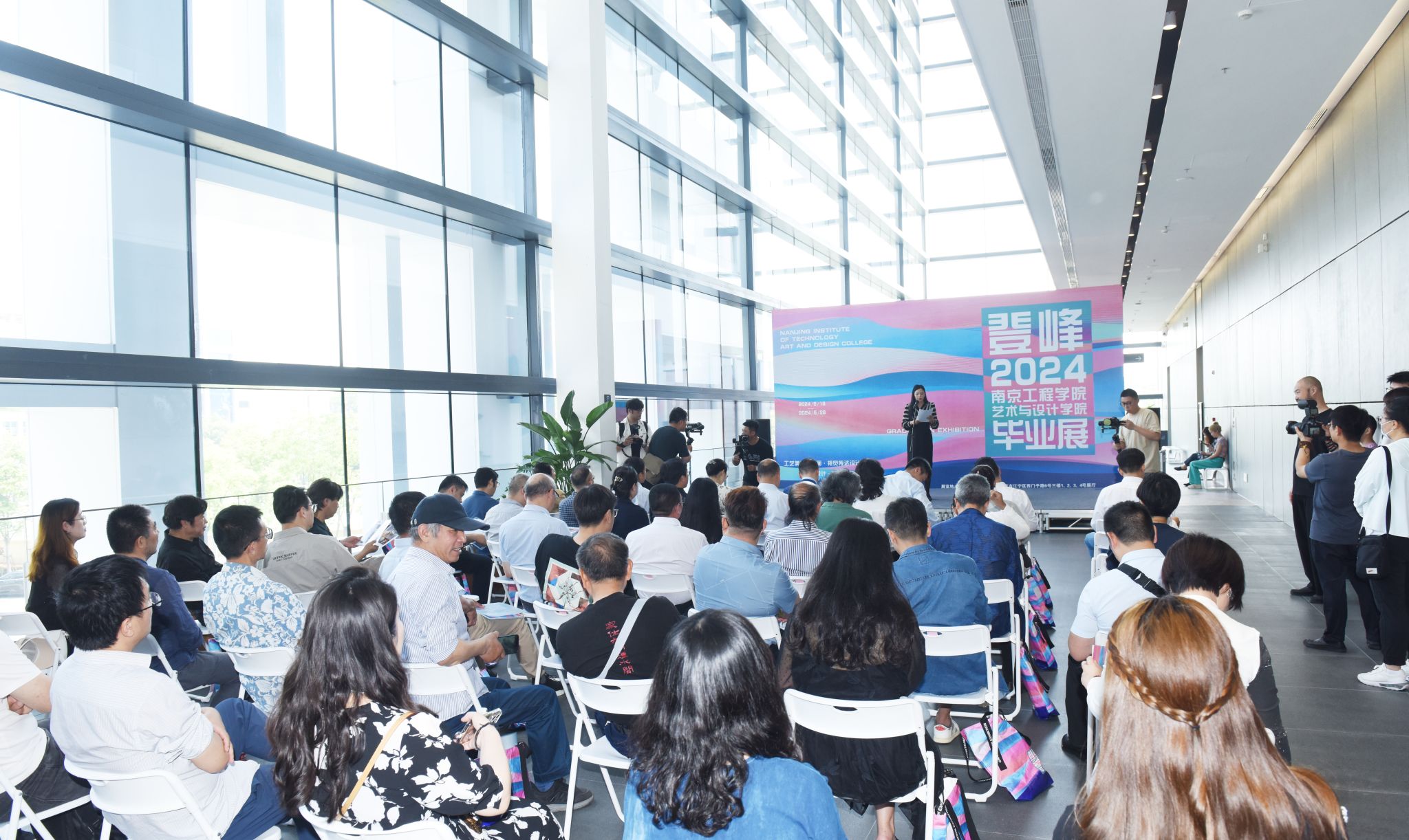 5月18日上午,我校艺术与设计学院以“登峰2024”为主题的毕业设计展在江宁美术馆盛大开幕。党委书记孙爱武出席开幕式并讲话。江宁区文化和旅游局局长陈敏,江宁高新区副总经理孔永祥,百家湖文化中心副主任夏皓,南京高精传动设备制造集团有限公司总经理杨启林,南京地区兄弟院校艺术设计学院负责人以及我校相关职能部门负责人、艺术与设计学院党政负责人以及师生代表参加活动。