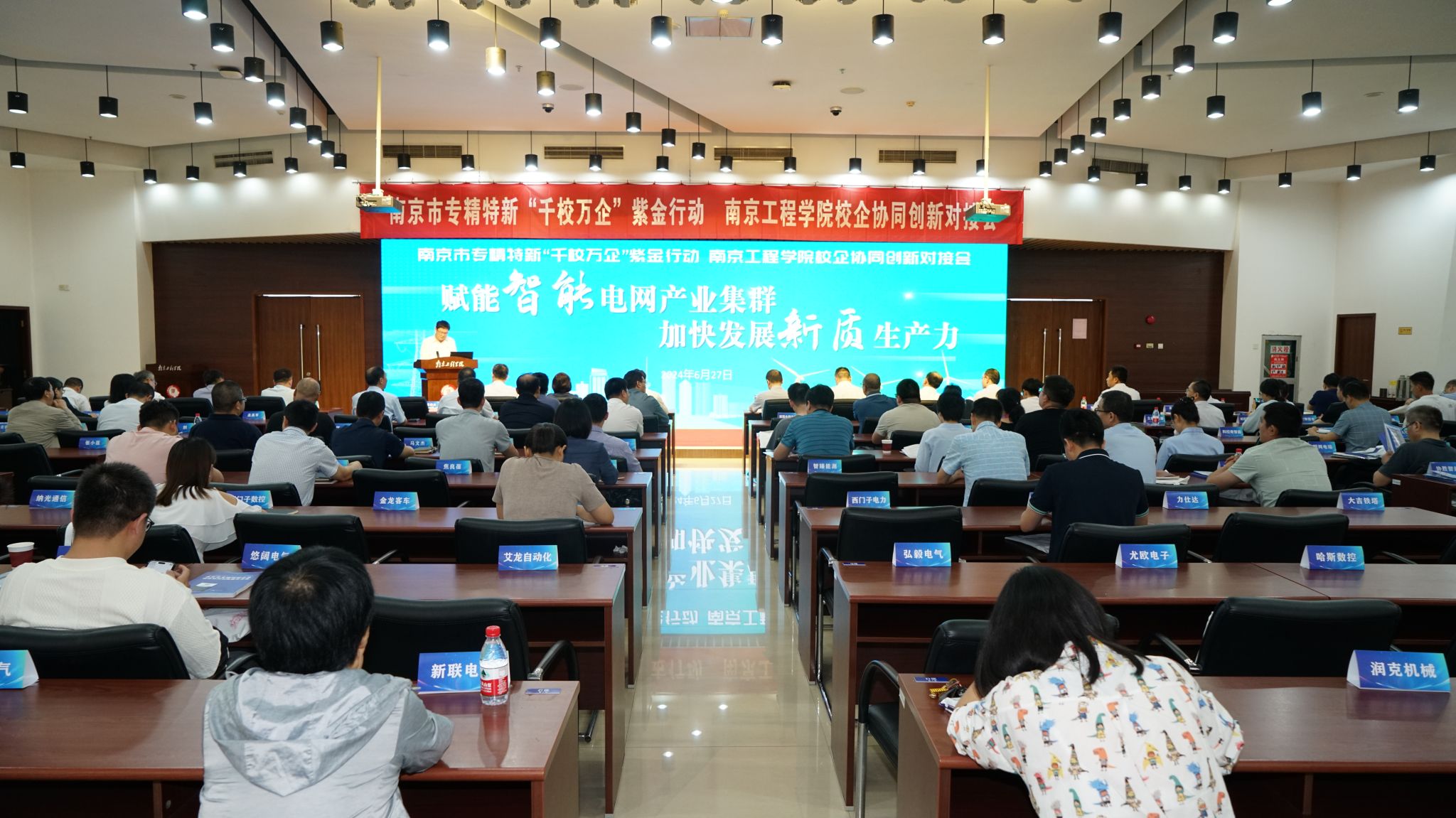 6月27日下午,南京市专精特新“千校万企”紫金行动凯发k8官网校企协同创新对接会在至勤楼·行政中心二楼多功能厅举行。南京市工业和信息化局副局长唐永实,我校党委书记孙爱武,党委副书记、校长张仰飞,党委副书记濮励杰,党委常委、副校长汪群、赵文祥,南瑞继保电气有限公司副总经理朱晓彤,南瑞集团配电公司副总经理杜红卫出席会议。活动第一阶段由濮励杰主持。