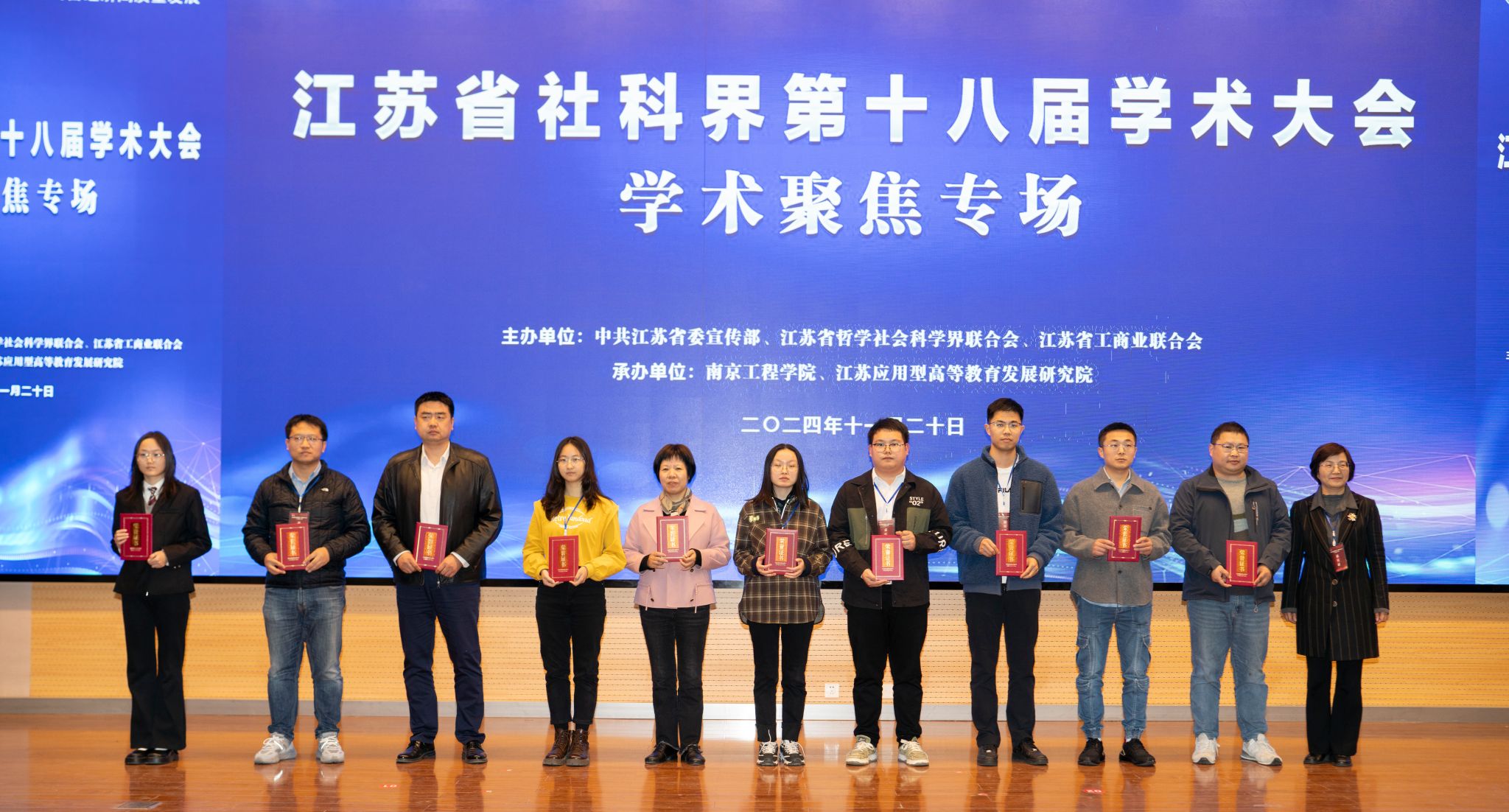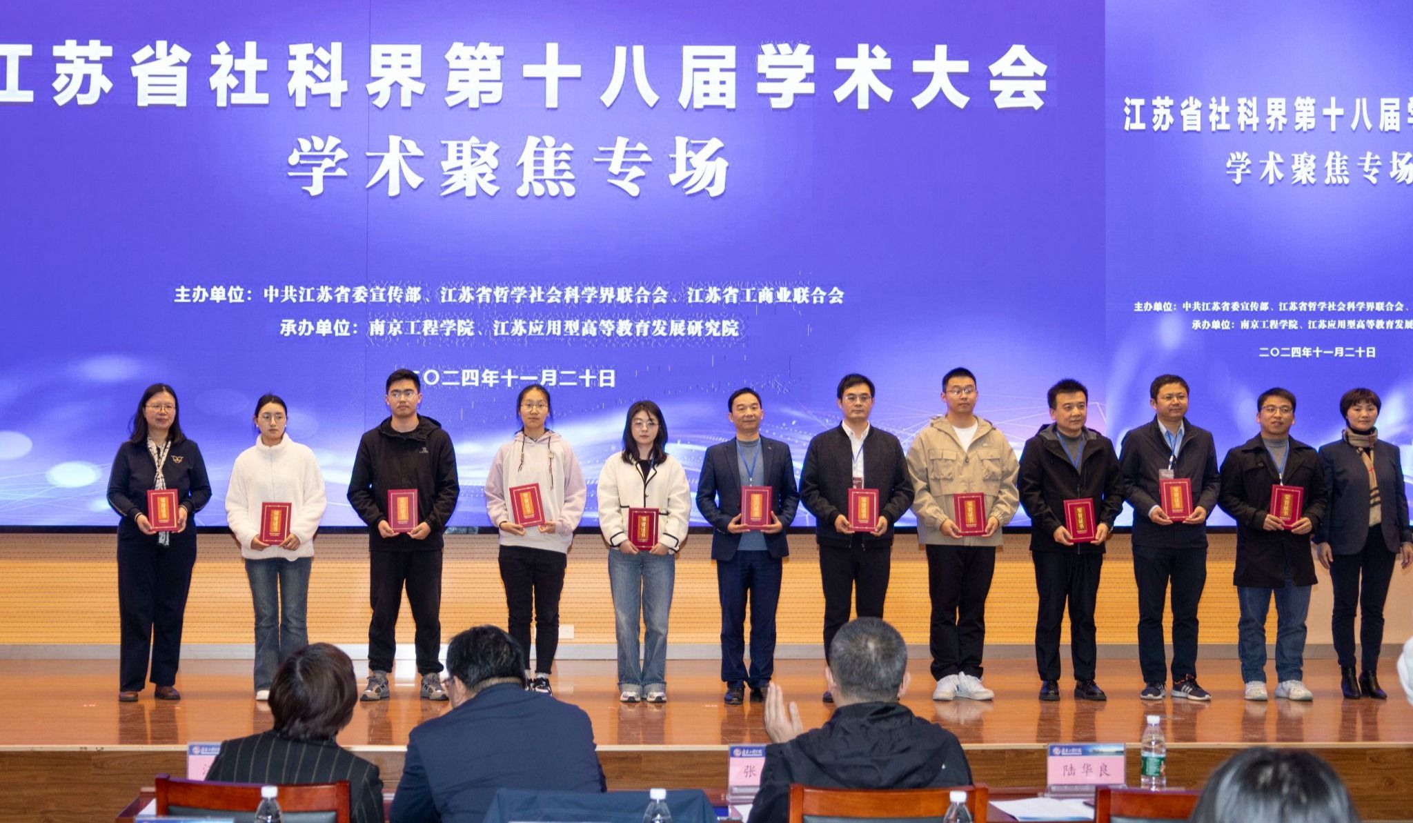 为深入学习贯彻习近平新时代中国特色社会主义思想,全面贯彻党的二十大和二十届三中全会精神,全面落实省委十四届七次全会精神,11月20日,由中共江苏省委宣传部、江苏省哲学社会科学界联合会、江苏省工商业联合会主办,凯发k8官网、江苏应用型高等教育发展研究院承办的江苏省社科界第十八届学术大会学术聚焦专场在我校举行。省社科联党组书记、常务副主席张新科,省工商联党组成员、副主席郭东升,省社科联党组成员、副主席刘西忠,省社科联组联中心主任王淑芬,我校党委书记孙爱武,党委副书记、校长张仰飞,党委常委、副校长汪群,党委常委、副校长陆华良,东南大学首席教授、经济管理学院原院长徐康宁,长江产业发展研究院特聘研究员、江苏省民营经济研究会创会秘书长、中国民营经济研究会理事吴跃农,南京康尼机电股份有限公司总工程师史翔,金陵金箔集团董事局主席江楠等出席开幕式。开幕式由张仰飞主持。