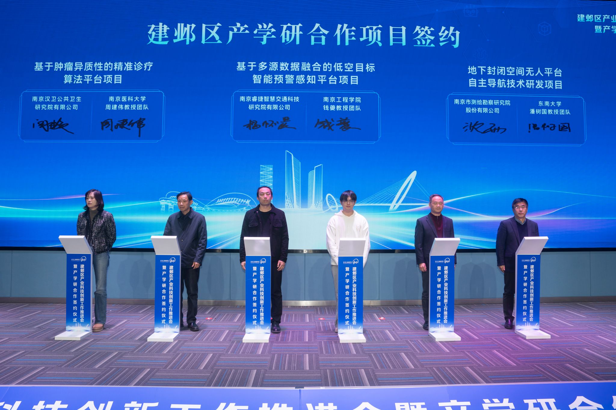 此次活动,建邺区还与东南大学国家卓越工程师学院、南京信息工程大学签署了战略合作框架协议,与东南大学落地卓越工程师联合培养基地。共有4家企业签约落地产业项目,6家企业与相关高校人才团队签约产学研合作项目。