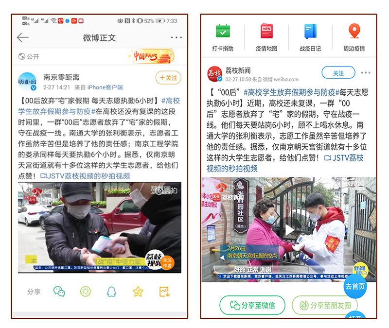 编者按:国家危难时,青春勇担当。在这场全民参与的疫情防控阻击战中,我校大学生逆行而上、冲锋在前,成为坚强的“95”后、“00”后战士,他们在这场没有硝烟的战场上用最美的青春乐章献青春、致青春,受到了当地媒体的关注和报道。我们将这些报道整理如下,持续更新。让我们记住每一个在被需要的时刻从不缺席的青年志愿者的身影。
