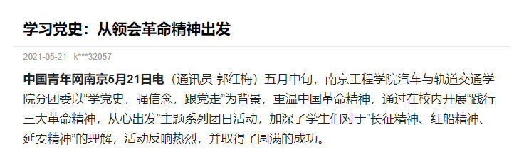 新闻链接 https://xiaoyuan.cycnet.com.cn/s?signature=xZry0KPXd5RYDQVznvq4v85VjumybEaGlE6go9mAJkeON2wjWB&uid=2640347&phone_code=32efb2d0d77ad87326c001f6449ce66a&scid=834573&time=1621579117&app_version=(null)&sign=53a207203ca2a1689c7fd99907b21ea1#
