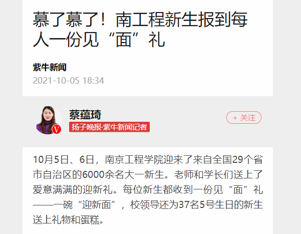 《紫牛新闻》:慕了慕了!南工程新生报到每人一份见“面”礼