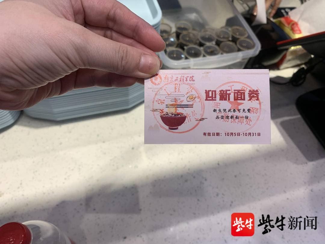 更让人羡慕的是,每位新生都有一份迎新礼。“上车饺子下车面”,为了给6000余名新生暖胃去风尘,凯发食堂特为每位同学准备了一份见“面”礼——“迎新面”。